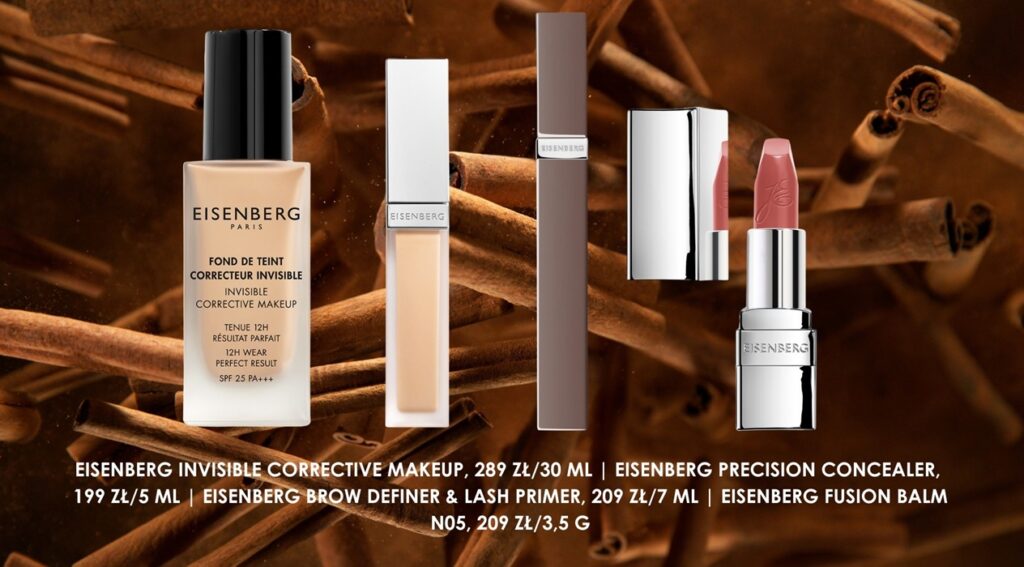 Cinnamon makeup to połączenie elegancji i prostoty. Makijaż zbudowany na bazie ciepłych tonów brązu, nadaje spojrzeniu głębi, cerze miękkości, a ustom szlachetnej wyrazistości. To trend, który doskonale sprawdza się na co dzień – w pracy czy w miejskim rytmie – a jednocześnie ma w sobie potencjał wieczorowej klasy, gdy tylko dodamy mu odrobinę intensywności. Oto 4 produkty EISENBERG Paris, które musisz poznać tej jesieni, by stworzyć swój cinnamon makeup.